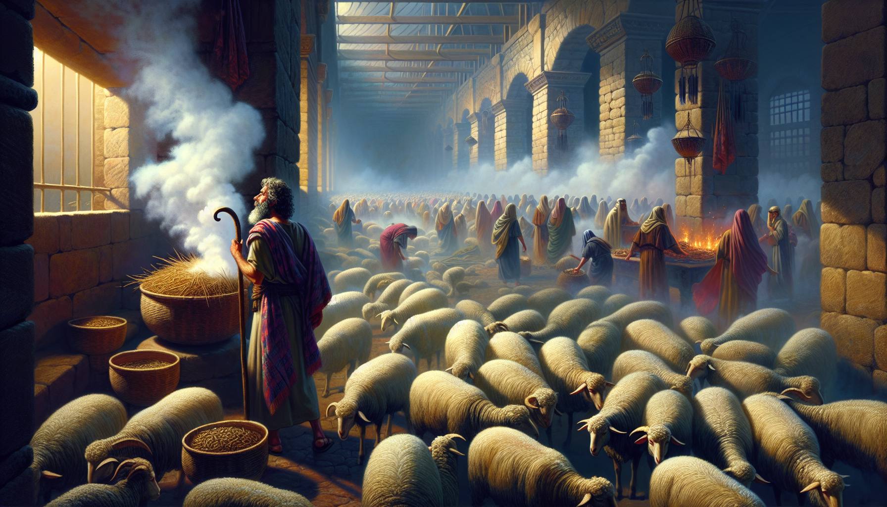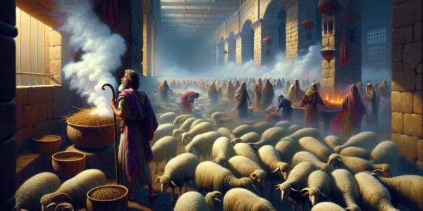 La estancia estaba cargada de un olor a cordero asado, hierbas amargas y cera de velas derretida. Un polvo tenue, levantado por sandalias inquietas, danzaba en los rayos oblicuos del sol que se colaban por la ventana alta. El aire…