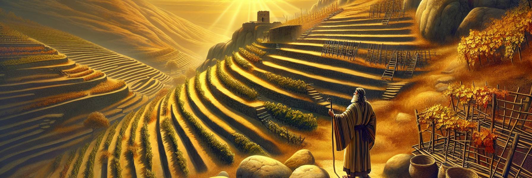 Había una vez un hombre que poseía un fértil terreno en la ladera de un monte, donde la tierra era rica y el sol acariciaba las plantas con su calor. Con esmero, este hombre cavó y removió la tierra, quitando las piedras que podían obstaculizar el crecimiento de sus plantas. Luego, plantó en ella vides escogidas, las más finas, aquellas que prometían dar el vino más dulce y aromático. Con sus propias manos construyó una torre en medio del viñedo, desde donde los vigilantes podían proteger los frutos de los animales y los ladrones. Incluso talló un lagar entre las rocas, preparando todo para la cosecha que habría de venir.