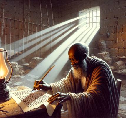Judas, con el corazón pesado pero lleno de unción, tomó el papiro y comenzó a escribir con tinta oscura y firme: