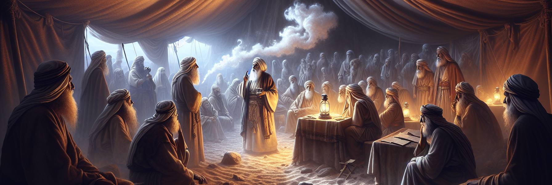 La mañana siguiente amaneció con una claridad cruel. El campamento entero se había congregado, un mar de rostros ansiosos y temerosos. Los doscientos cincuenta hombres se alinearon con sus incensarios de bronce pulido, que relucían con una luz fría. Junto a ellos, Koraj, Datán y Abirán permanecían de pie con los brazos cruzados, desafiando no solo a Moisés sino al silencio de Dios.