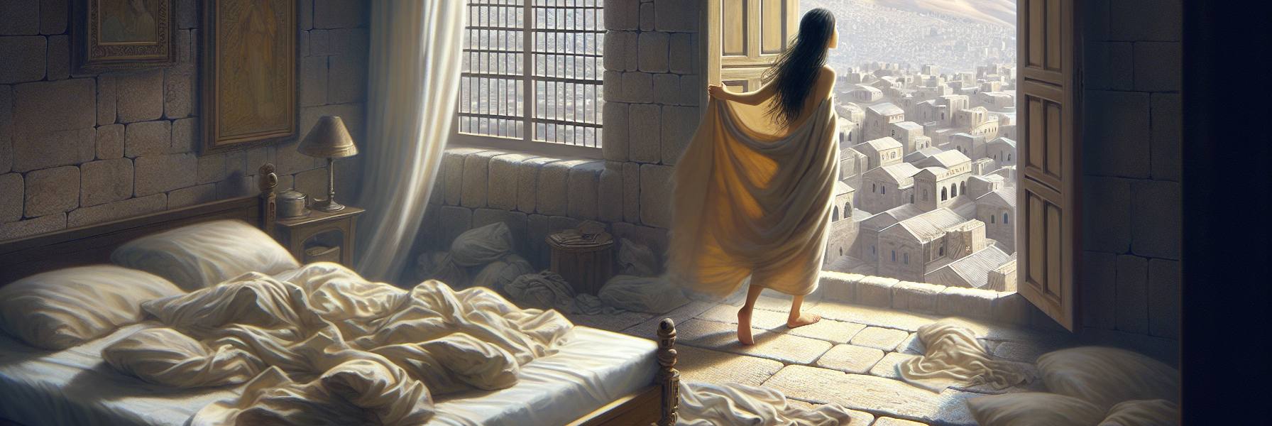 El viento del norte había amainado por fin, y con él se llevó aquel aire frío que durante días había entrado por los resquicios de la ventana. Sulamita se levantó del lecho, sintiendo el mármol fresco bajo sus pies descalzos. La luz del alba, tímida aún, se filtraba entre los cipreses del jardín. Recordó el sueño—o la pesadilla—de la noche anterior: su amado había desaparecido, y ella, desesperada, lo buscaba por las calles oscuras de la ciudad. Pero ahora, en la quietud de la mañana, algo le decía que él no se había ido lejos.