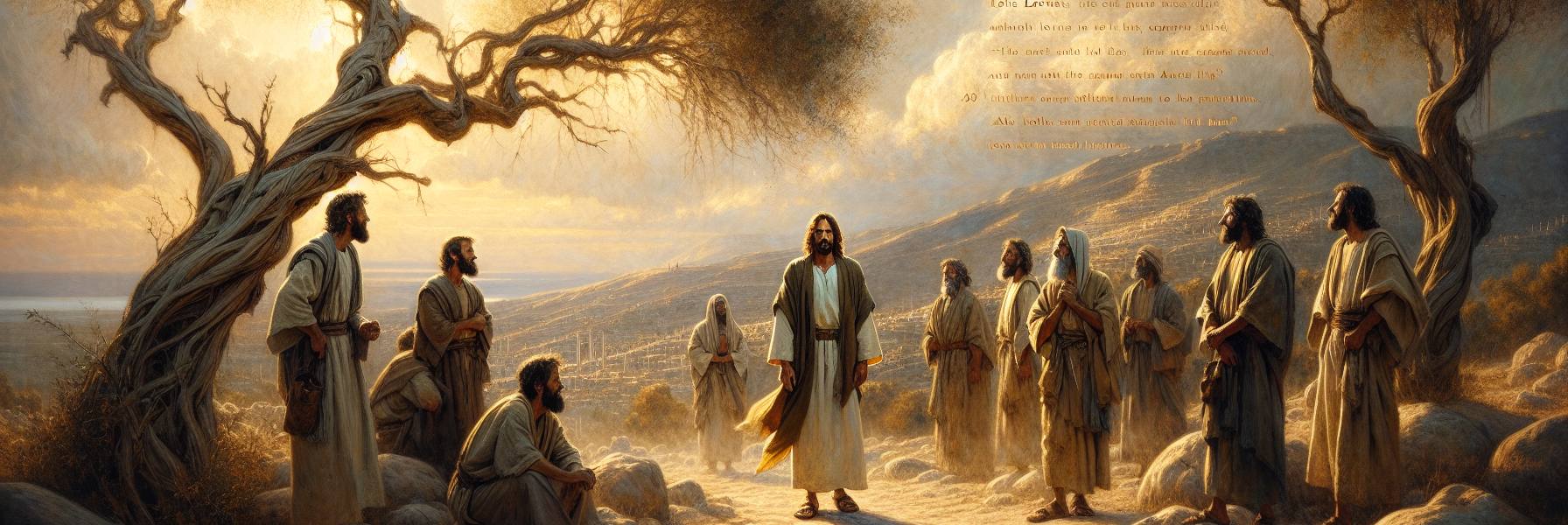 El aire aún tenía esa frescura del alba, cargado con el olor a tierra húmeda y romero silvestre. Sobre la ladera del Monte de los Olivos, la luz era de ese color ceniciento que precede a la claridad, tornando las siluetas de los hombres en formas difusas, casi como sombras con peso propio. Jesús estaba con ellos. Lucas, siempre observador, notaba cómo la tela simple de la túnica del Maestro parecía atrapar los primeros y tenues rayos de sol, mientras el resto del mundo dormitaba en tonos grises y verdes oscuros.