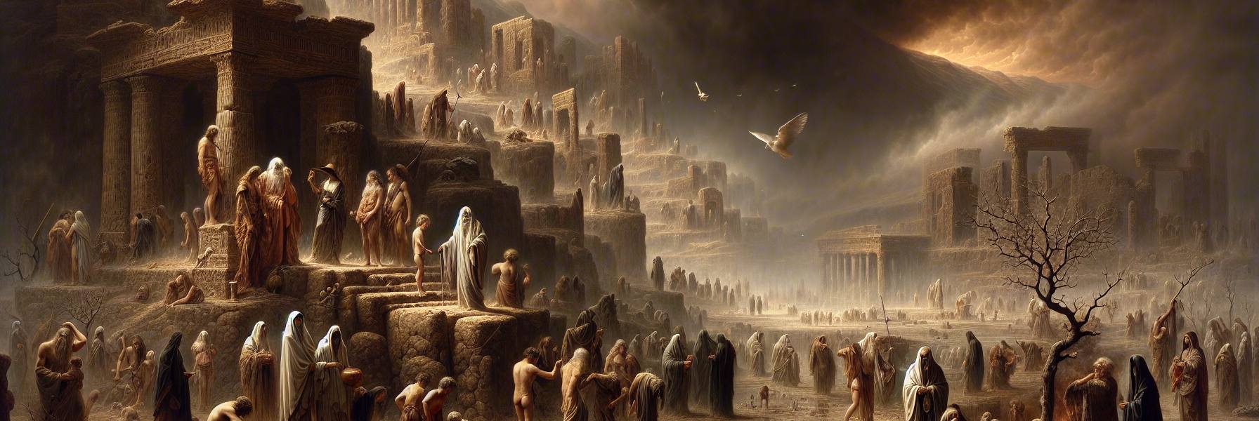 No explicó más. No hacía falta. Lamec lo supo. Era el juicio. No un arrebato de ira, sino la triste conclusión de una paciencia infinita y agotada. «Me pesa haberlos hecho», había dicho el Creador. El verbo hebreo, «nachem», resonaba en el alma de Lamec con un eco desgarrador: arrepentirse, condolerse, respirar con pesar. El dolor de Dios. No la furia de un tirano, sino la amargura de un alfarero ante la vasija que, a pesar de todos sus esfuerzos, se torció irremediablemente entre sus dedos.