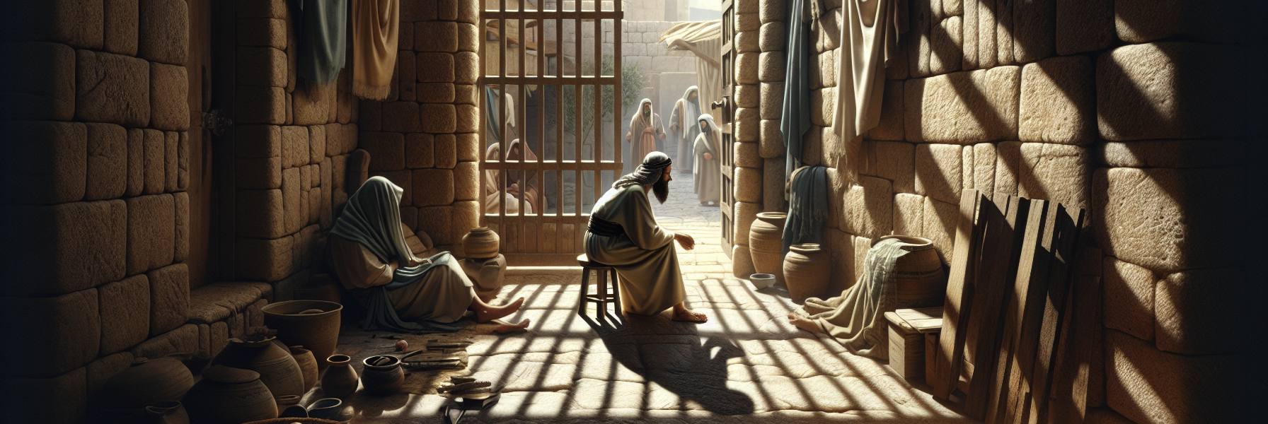 Los llevó a su casa, una construcción de piedra modesta. Desuncir los asnos, llevarlos al establo trasero, todo se hizo en un silencio práctico. Dentro, el calor de un fuego bajo y el olor a cebada cocida los envolvió. Lavaron sus pies polvorientos, y el anciano sirvió de su propia provisión, añadiendo a lo que ellos llevaban. Por un momento, en la tenue luz de la lámpara de aceite, con el vapor de la comida subiendo entre ellos, pareció respirarse un hálito de normalidad, de la antigua *hesed*, la misericordia pactada del pueblo de Dios.