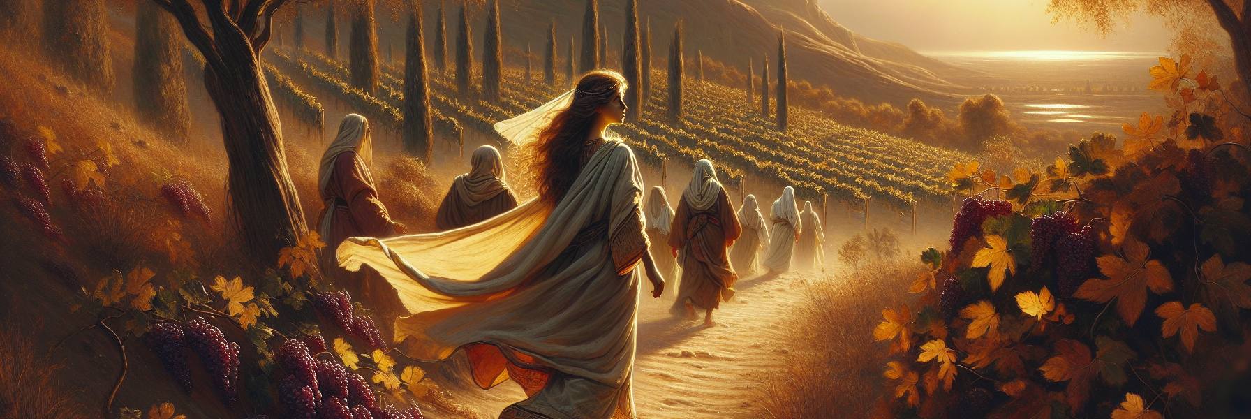 Sus pies, calzados con sencillas sandalias, pisaban con seguridad los senderos de tierra. “¡Qué hermosos son tus pies en las sandalias, hija de príncipe!”, pensó, y las palabras le surgieron en un susurro que apenas alteró el silencio. Las curvas de sus caderas, el vaivén suave de su talle, le recordaban la elegante redondez de un joyel trabajado por manos maestras. No eran comparaciones rebuscadas; eran las imágenes que le nacían al verla, las únicas que podían capturar algo de su esencia. “Las curvas de tus caderas son como joyas, obra de manos de artista”.