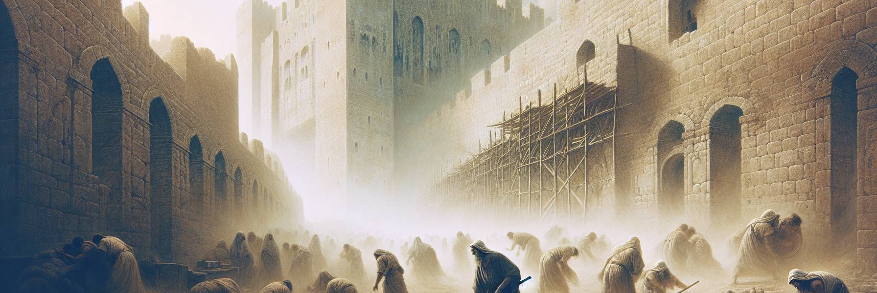 La noche olía a tierra húmeda y a cenizas recientes. Zorobabel, el gobernador, se había retirado hacía horas, y el silencio sobre el montón de ruinas que había sido Jerusalén era tan denso que parecía tener peso. Yo, un hombre de palabras sencillas y manos encallecidas por el trabajo de reconstrucción, no podía dormir. Caminé entre las piedras desenterradas, los cimientos apenas visibles de lo que fue. La luna, un fino hilo plateado, iluminaba de manera cruel la desnudez de Sión. En mi corazón, una pregunta antigua y cansada giraba en círculos: ¿hasta cuándo?