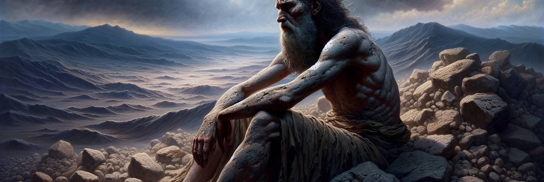 El viento había amainado, pero su eco aún zumbaba en los oídos de Job como el rumor lejano de un mar encolerizado. El polvo del torbellino se había asentado lentamente, cubriendo sus ropas y sus brazos extendidos con una fina capa gris, como si la tierra misma lo estuviera reclamando. El silencio que siguió era de una cualidad distinta, denso y expectante, cargado no con ausencia, sino con una presencia que llenaba el espacio entre los cerros pedregosos y el cielo despejado que ahora se revelaba, de un azul implacable.