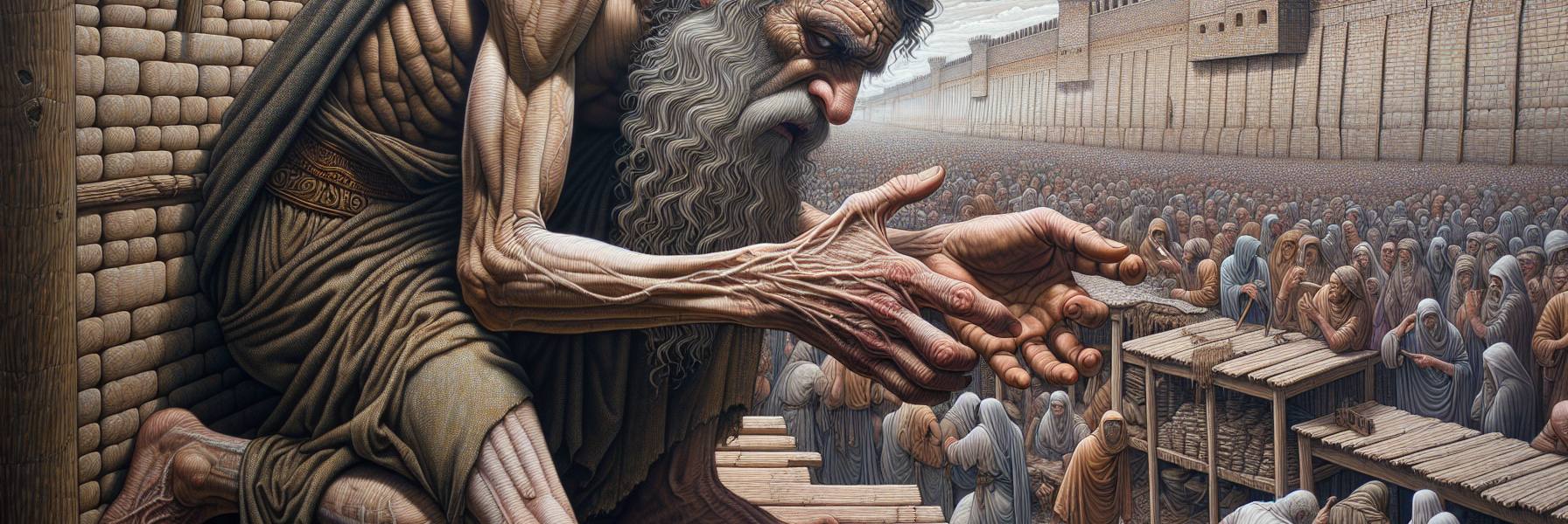 Sus dedos, nudosos y surcados de venas, se aferraban al borde de su manto de lino. Desde su rincón, cerca de las columnas de bronce, escuchaba fragmentos de conversaciones, risas triviales, negocios que no cesaban ni en el lugar sagrado. Y más allá, en la ciudad que se extendía como un tapiz de piedras ocres bajo el cielo implacable, sabía lo que ocurría. Lo había visto. La viuda a la que unos oficiales con caras afiladas como cuchillos le habían arrebatado su última parcela con documentos falsos. El forastero, un hombre de ojos cansados de Sidón, golpeado en una calleja por unos matones cuyos amos nunca se manchaban las manos. La sangre se secaba rápido en el polvo, y el clamor de los justos parecia perderse en el rumor de la ciudad, como un grito en un desierto.