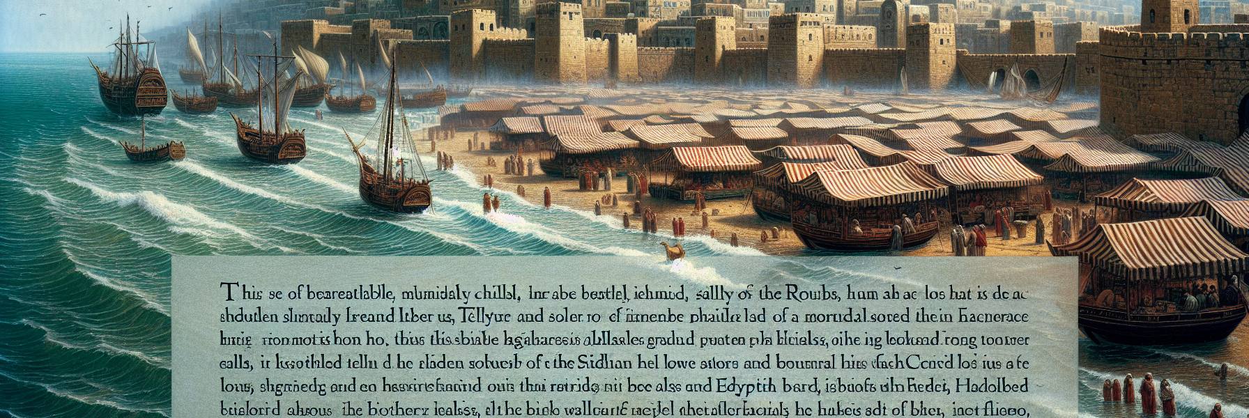 El sol comenzó a desgarrar la bruma, revelando la imponente silueta de Tiro. La ciudad-isla, fortaleza inexpugnable, se erguía sobre el mar como un coloso. Murallas de cuarenta codos de alto, levantadas con piedra de canteras lejanas, se sumergían directamente en las profundidades. En el puerto sur, el Sidonio, las galeras de guerra reposaban. En el norte, el puerto Egipcio, atestado de mercantes. Los tejados de las casas, apiñados, brillaban bajo el sol naciente. El aire se llenaba del rumor de la ciudad que despertaba: el golpeteo de los martillos en los astilleros, el grito de los vendedores de pescado, el canto monótono de los esclavos que arrastraban bloques para un nuevo templo a Melkart. Era una ciudad viva, orgullosa, que se creía hija del mar y, por tanto, inmortal.