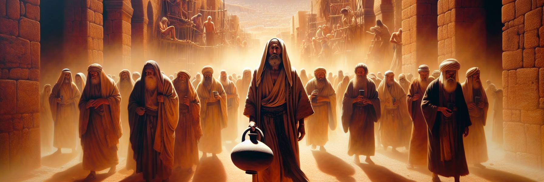 El calor de aquella tarde en Jerusalén no era solo cosa del sol. Era un calor que pesaba, que salía de la tierra misma como un aliento enfermo. Jeremías lo sentía en los huesos, un cansancio antiguo que no era solo del cuerpo. La palabra del Señor había llegado de nuevo, y con ella, una orden que le dejaba un sabor amargo en la boca, como el de hierba machacada.
