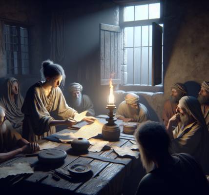“La promesa se hizo frágil, como un hilo de lino, cuando el hambre apretó las gargantas. Jacob y sus hijos bajaron a Egipto, un puñado de almas temblorosas. Pero hasta allí había llegado antes la mano de la providencia. ¿Recuerdas a José, el soñador?” Abías esbozó una sonrisa, mostrando unos pocos dientes amarillos. “Vendido por envidia, tirado a un pozo oscuro donde solo se oía el goteo de la tierra y el latido del miedo. Luego, prisión. Olvido. Pero Dios… Dios tenía otros planes. Transformó la aflicción en llave. Lo que los hombres intentaron para mal, Él lo torció para bien. José, de esclavo a señor del granero del mundo. Y cuando sus hermanos, flacos y avergonzados, se postraron ante él sin reconocerlo, no hubo venganza en su corazón. Solo vio el hilo, el hilo dorado y tenaz de la promesa. ‘Vosotros pensasteis mal contra mí,’ les dijo, ‘mas Dios lo encaminó a bien.’ Egipto nos acogió, y allí crecimos. De un puñado a una multitud. El hilo se hacía más fuerte.”