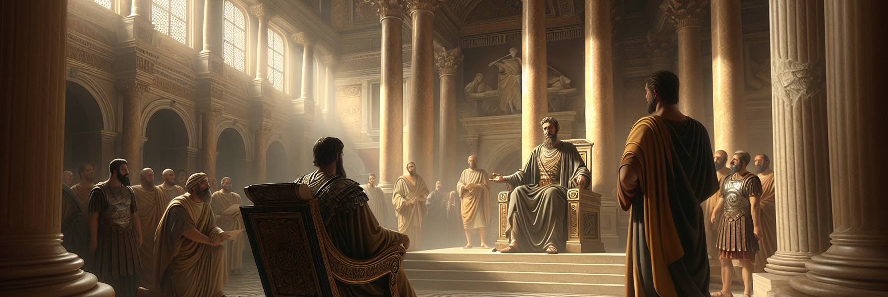 Entonces, hice señas a Pablo. El hombre que se levantó no se parecía en nada al agitador que Tertulo había pintado. Era de baja estatura, con la frente amplia y los ojos de una intensidad desconcertante. No había miedo en ellos, sino una atención serena. Cuando habló, su voz era clara, sin la teatralidad de su acusador.