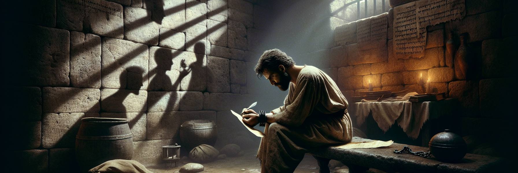 Doblando el papiro con cuidado, pensó en la carrera que aún faltaba. El premio seguía brillando delante de él. Y, por un instante, en el silencio de la celda, el frío del suelo y el peso de las cadenas no fueron una carga, sino parte del camino, la dura y preciosa participación que, de una manera misteriosa, lo unía más a Aquel que había sido clavado en una cruz y que ahora le daba fuerza para seguir corriendo. Con un suspiro que no era de derrota, sino de profunda expectación, preparó el rollo para su viaje.