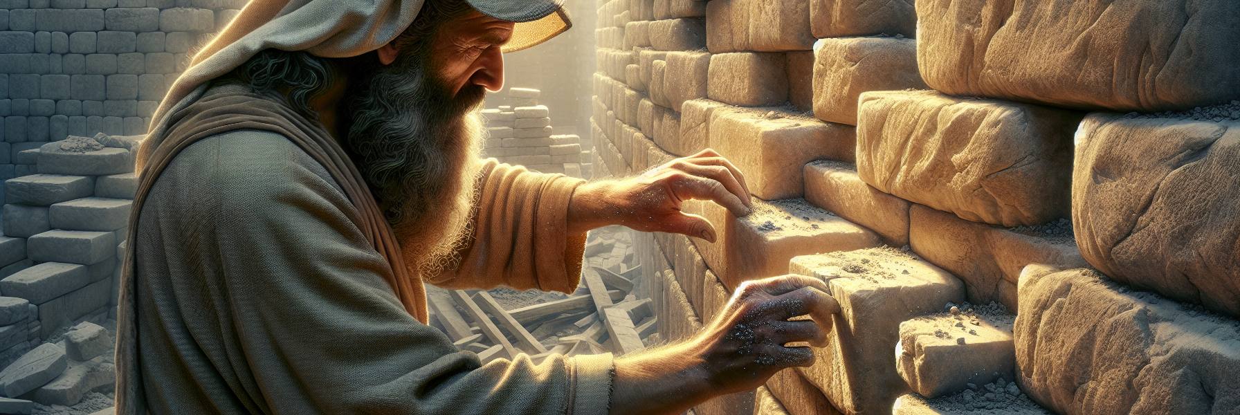 Ananías se acercó a los cimientos, puso una mano rugosa sobre la piedra angular, perfectamente tallada. La recorrió con los dedos, como si leyera en ella. —Bonita piedra. Muy derecha. ¿Sabes lo que dice el salmista? «Si el Señor no construye la casa, en vano se cansan los albañiles».