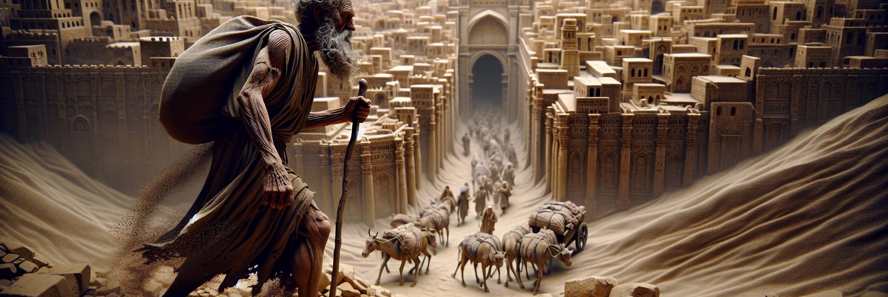 Una noche, sin luna, no pudo dormir. Salió de su choza de adobe y se sentó en un montón de ladrillos rotos. El aire, algo más fresco, traía el olor a especias lejanas y a estiércol de camello. Miró hacia el oeste, hacia donde sabía que estaba la tierra imposiblemente lejana. Y entonces, por primera vez en décadas, no pensó en las murallas derruidas de Jerusalén, ni en el oro saqueado. Pensó en un camino.