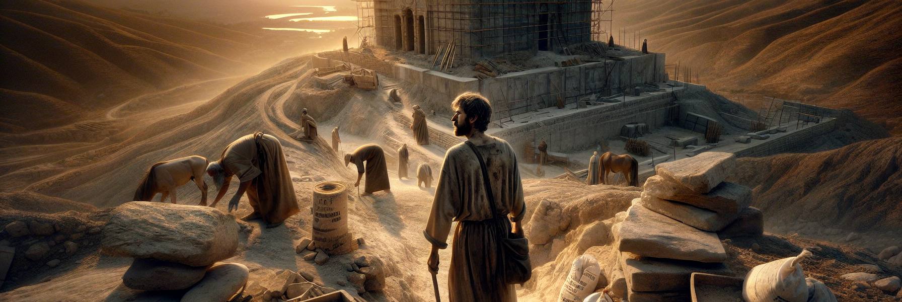 Se sentó en un bloque de piedra labrada, mitad enterrada en la tierra, y dejó que la quietud lo envolviera. Cerrando los ojos, no veía el andamiaje precario, sino el recuerdo del Primer Templo, la gloria que los ancianos susurraban con voz temblorosa. A veces, la memoria era más cruel que la ruina presente.