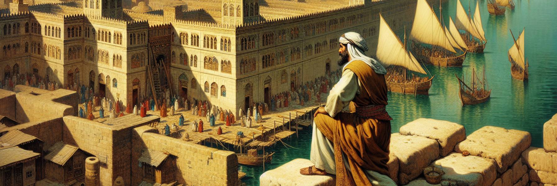 Me vino a la memoria la imagen de la ciudad, la visité una vez en mi juventud. No la isla fuerte, sino la Tiro continental, la llamada “ciudad vieja”, Ushu. Allí vivían los trabajadores, los tintoreros, los carpinteros de ribera. Desde la playa, mirando hacia la isla, era como contemplar un sueño hecho de piedra. Murallas inexpugnables, torres que se elevaban hacia el cielo, y el constante ir y venir de botes que unían ambas orillas, cargados de mercancías y de esa seguridad que da el poder. Ahora, esa seguridad era polvo. Los babilonios, pacientes como la erosión, debieron de arrasar Ushu primero, dejando a la isla como un diente roto en una boca vacía.